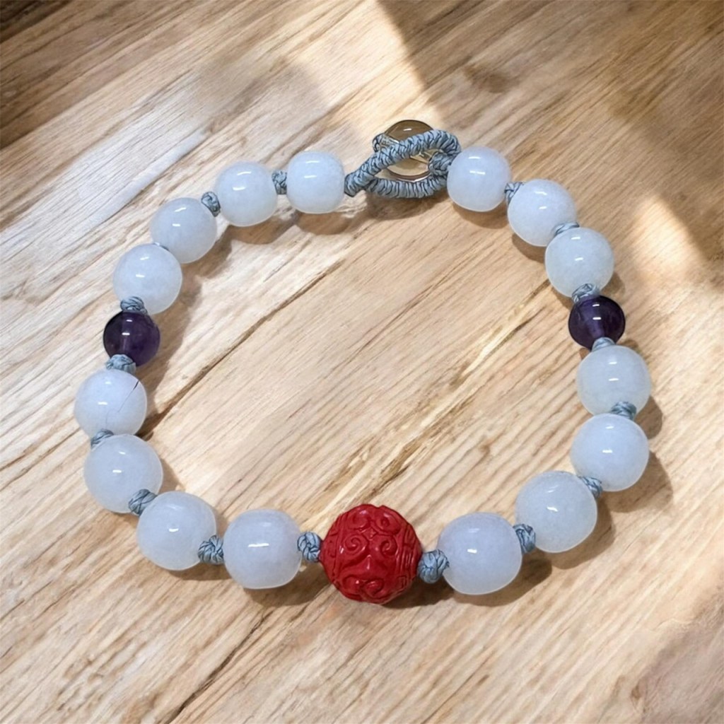#Joycy’sknots #手作珠寶 #和田玉 #客製化禮物 #平安扣 #設計師日常#蠟線編織#五色線編織#紫水晶#紅硃砂#黃水晶#新中式